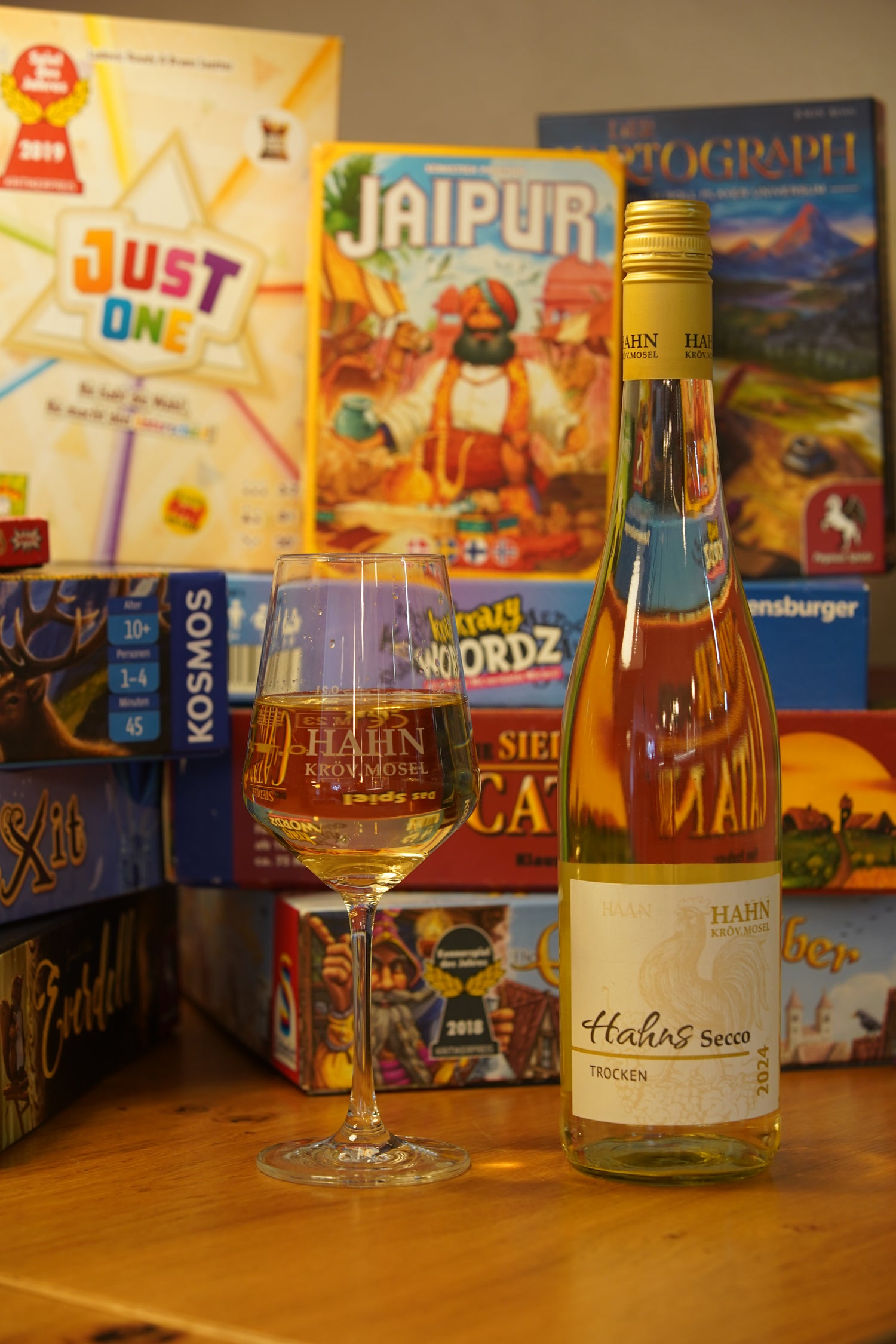 Ob Klassiker oder moderne Brettspiele – zwischen Weinflaschen und Spielkarten steht der Spaß im Mittelpunkt. Eigene Lieblingsspiele sind herzlich willkommen. Dazu servieren wir unsere Weine und kleine Leckereien aus unserer Küche – beste Voraussetzungen für einen geselligen Abend.