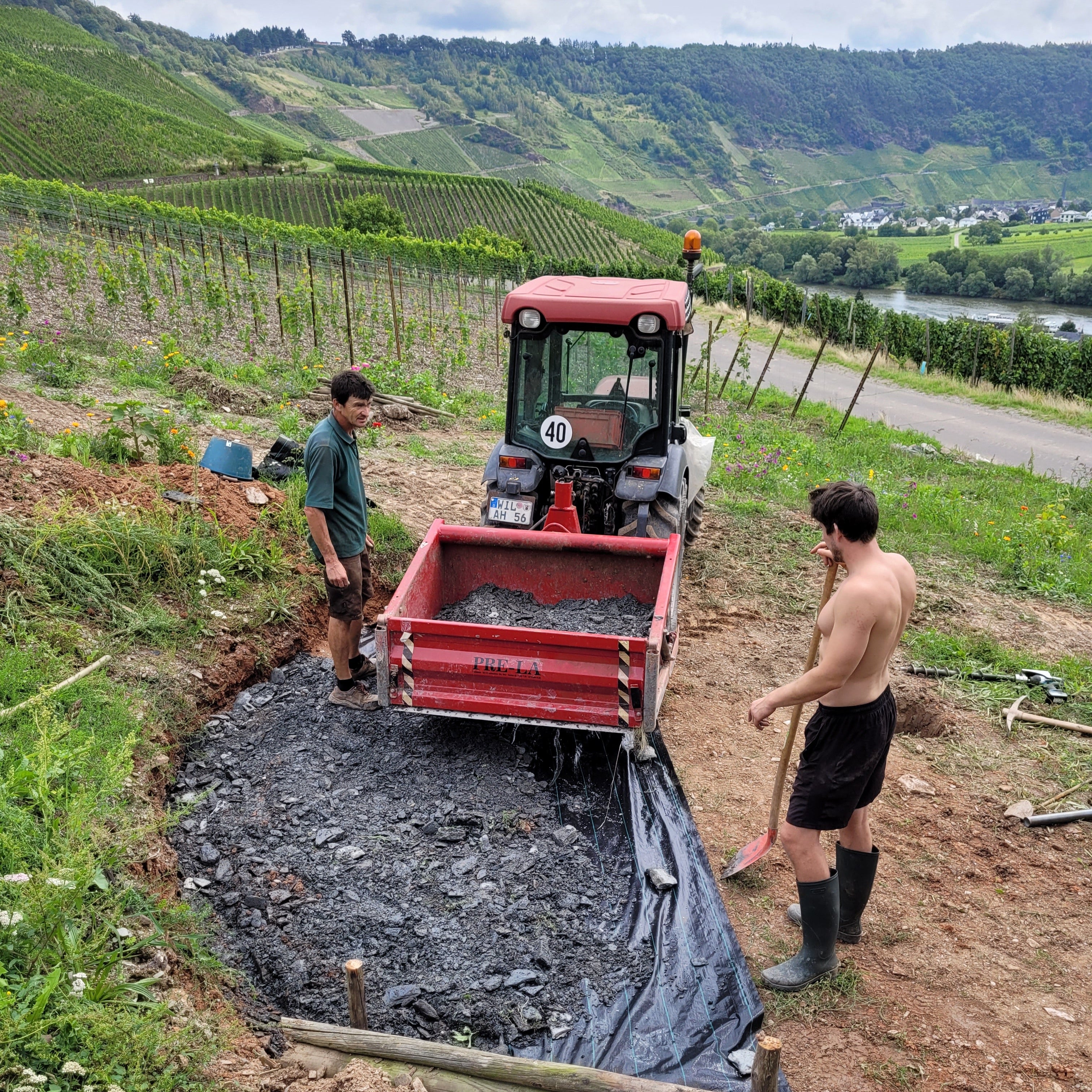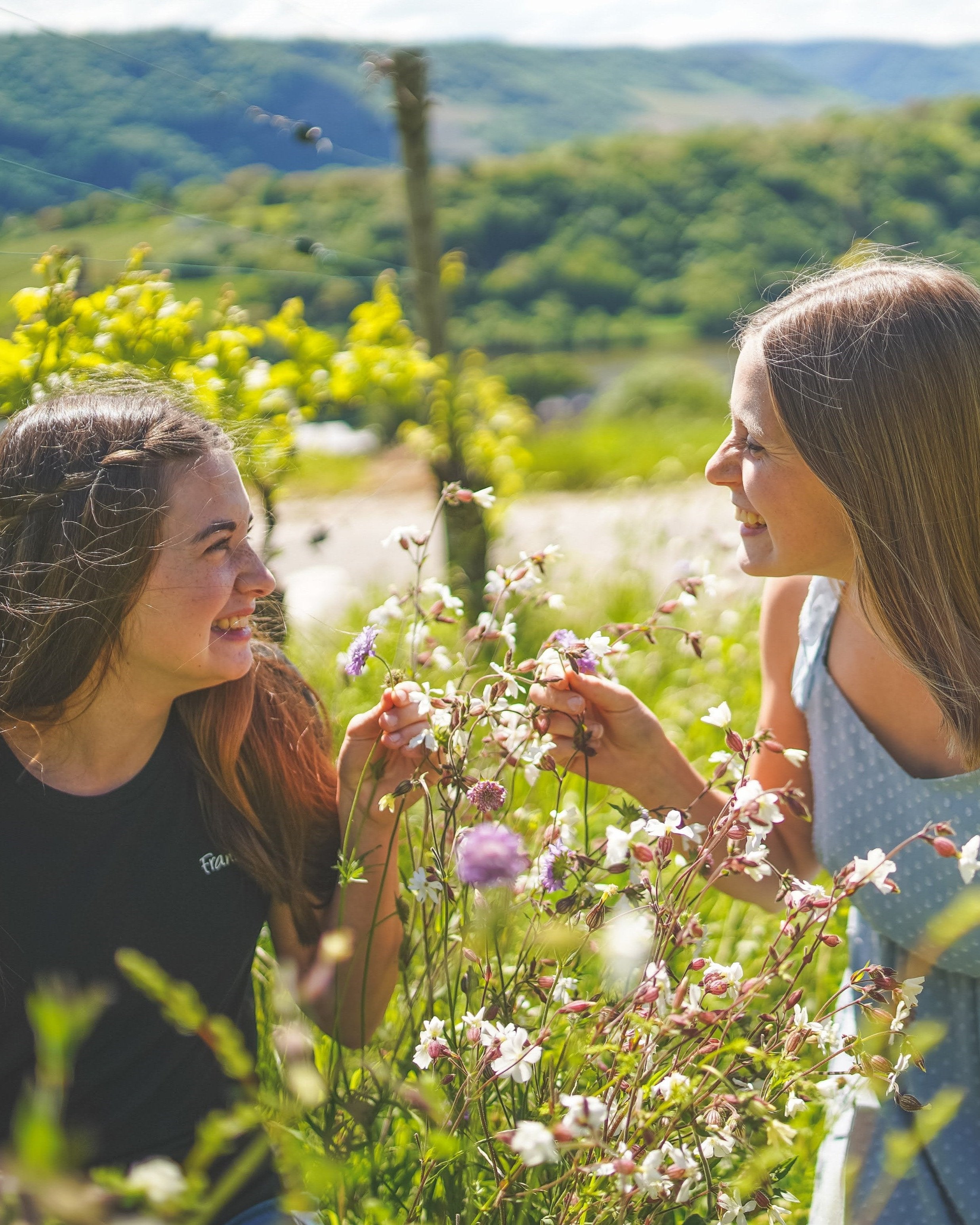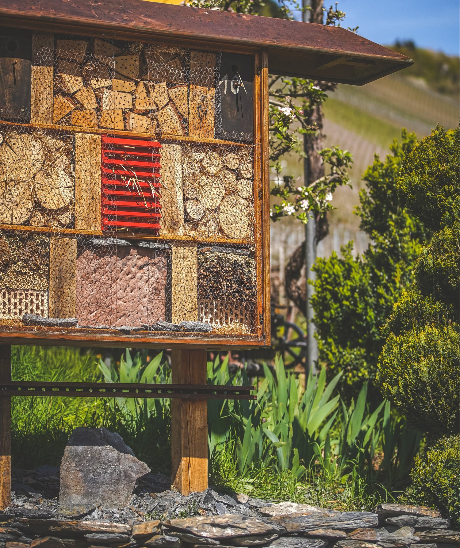 To promote biodiversity, we do not use herbicides. Instead, we regulate plant growth manually and sometimes even use an old-school hoe on our steepest slopes.