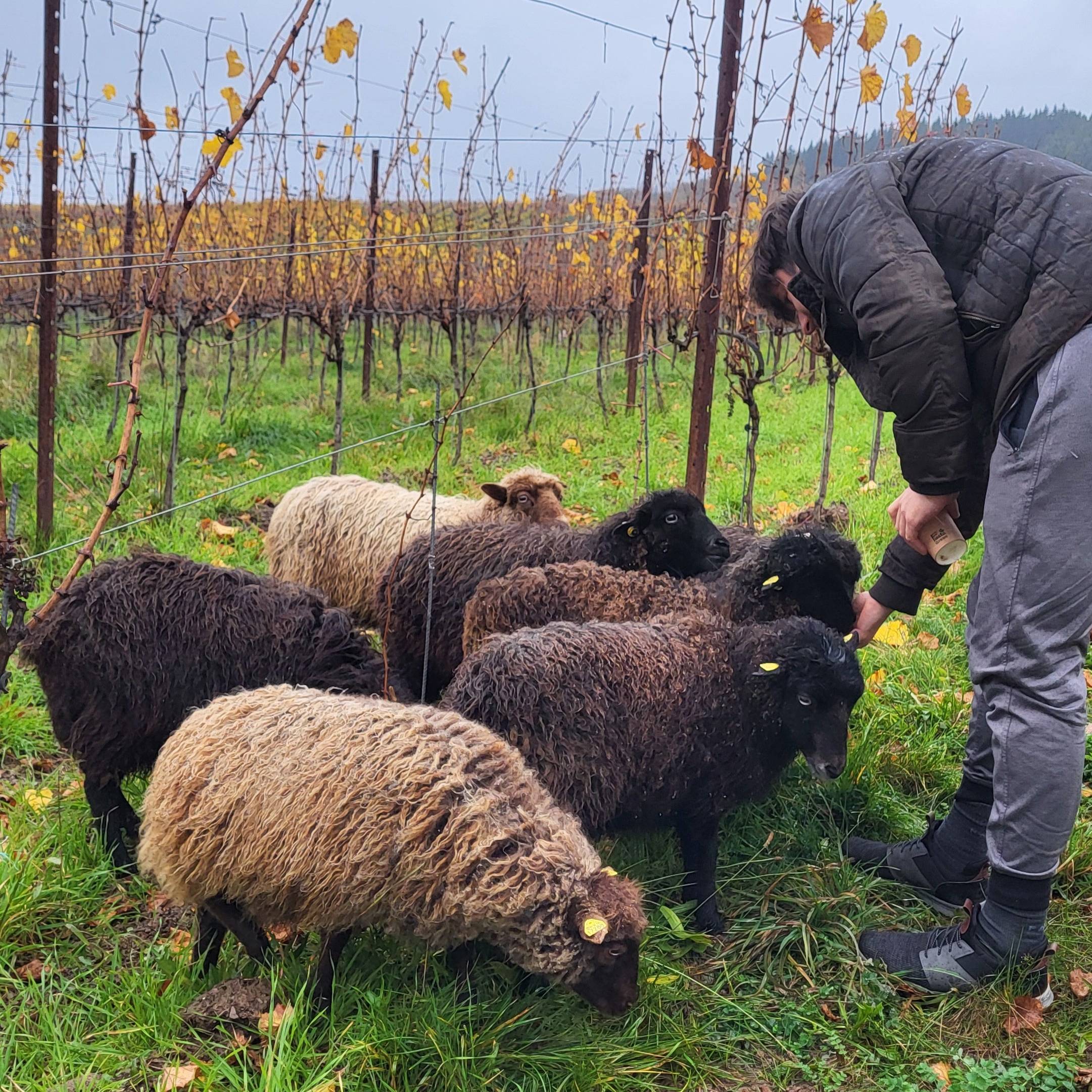 Seit Oktober 2025 weidet eine kleine Herde von sieben Ouessantschafen in unserem Weinberg. Durch den selektiven Verbiss wird das Pflanzenwachstum gefördert, und ihre Ausscheidungen liefern wertvolle Nährstoffe. Gleichzeitig können wir auf mechanische Maßnahmen verzichten, die sonst den Boden verdichten würden. Und mal ehrlich: Wie süß sind die Schafe bitte!